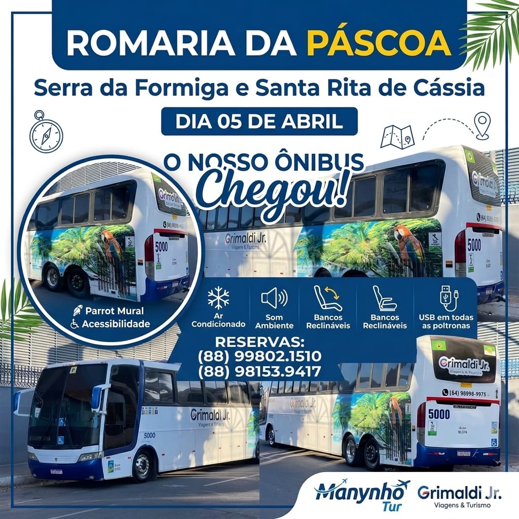 No próximo dia 5 de abril, Domingo de Páscoa, convidamos você para um momento inesquecível de fé, renovação e contato com a natureza. Manynho Tur preparou uma programação especial rumo ao Santuário São Francisco de Assis, localizado na belíssima Serra da Formiga, via Santa Rita de Cássia, em Santa Cruz.