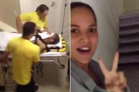 Com o smartphone em mãos, a funcionária — chamada Cinthia — fez um vídeo de 28 segundos no qual acompanha o jogador sendo levado, de maca, à sala onde ele seria submetido a um exame de ressonância magnética e tomografia.