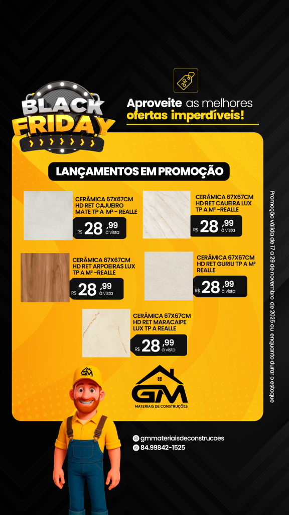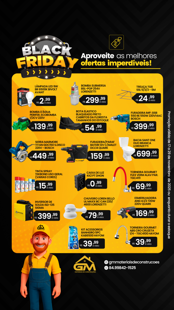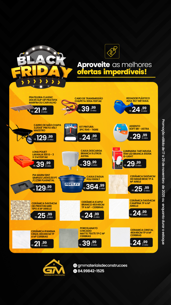 As ofertas da Black Friday da GM Materiais de Construções estão imperdíveis Postado em 19 de novembro de 2025