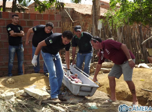 alcançado e executado dentro do muro de uma residência, no local a policia