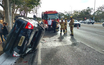 Carro que levava filho de Michel Temer capota no Eixão Sul, em Brasília (Foto: Corpo de Bombeiros/Divulgação)