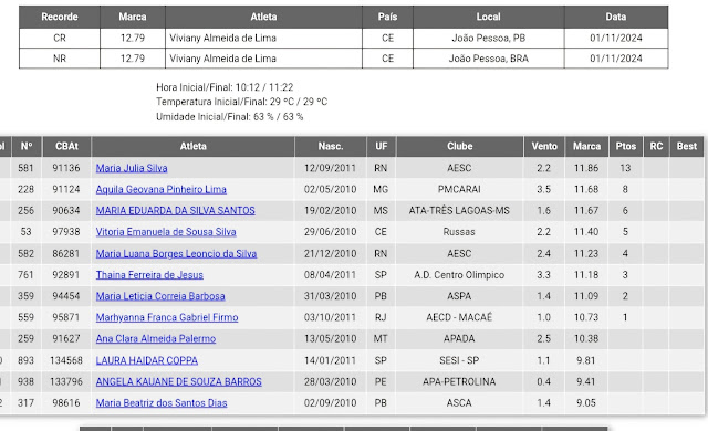 Outra atleta da AESC, Maria Luana Borges Leôncio da Silva, 14 anos, ficou em quinto lugar, atrás da mineira Aquila Pinheiro Lima, prata, com 11,68 metros; Maria Eduarda da Silva Santos, do Mato Grosso do Sul, que foi bronze, saltando 11,67 m e em quarto lugar, a cearense Vitória de Souza Silva, com a marca de 11,49 m.