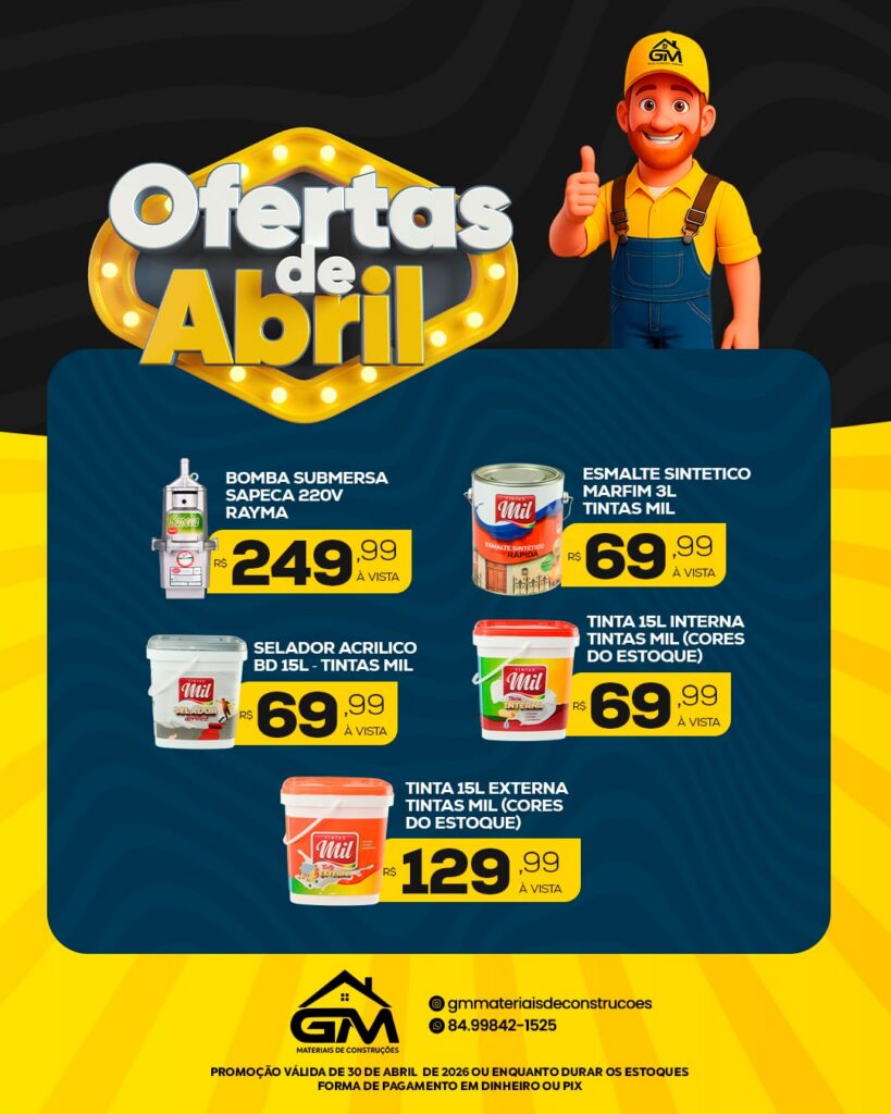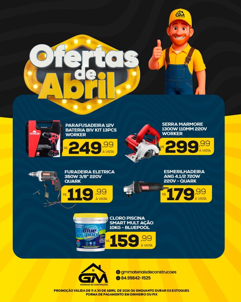 Confira as ofertas de abril na GM Materiais de Construções