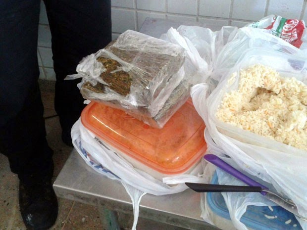 A droga, prensada e em tabletes, estava escondida em uma vasilha com arroz. O homem estava com a família e iria visitar o filho detento no almoço do Dia dos Pais.