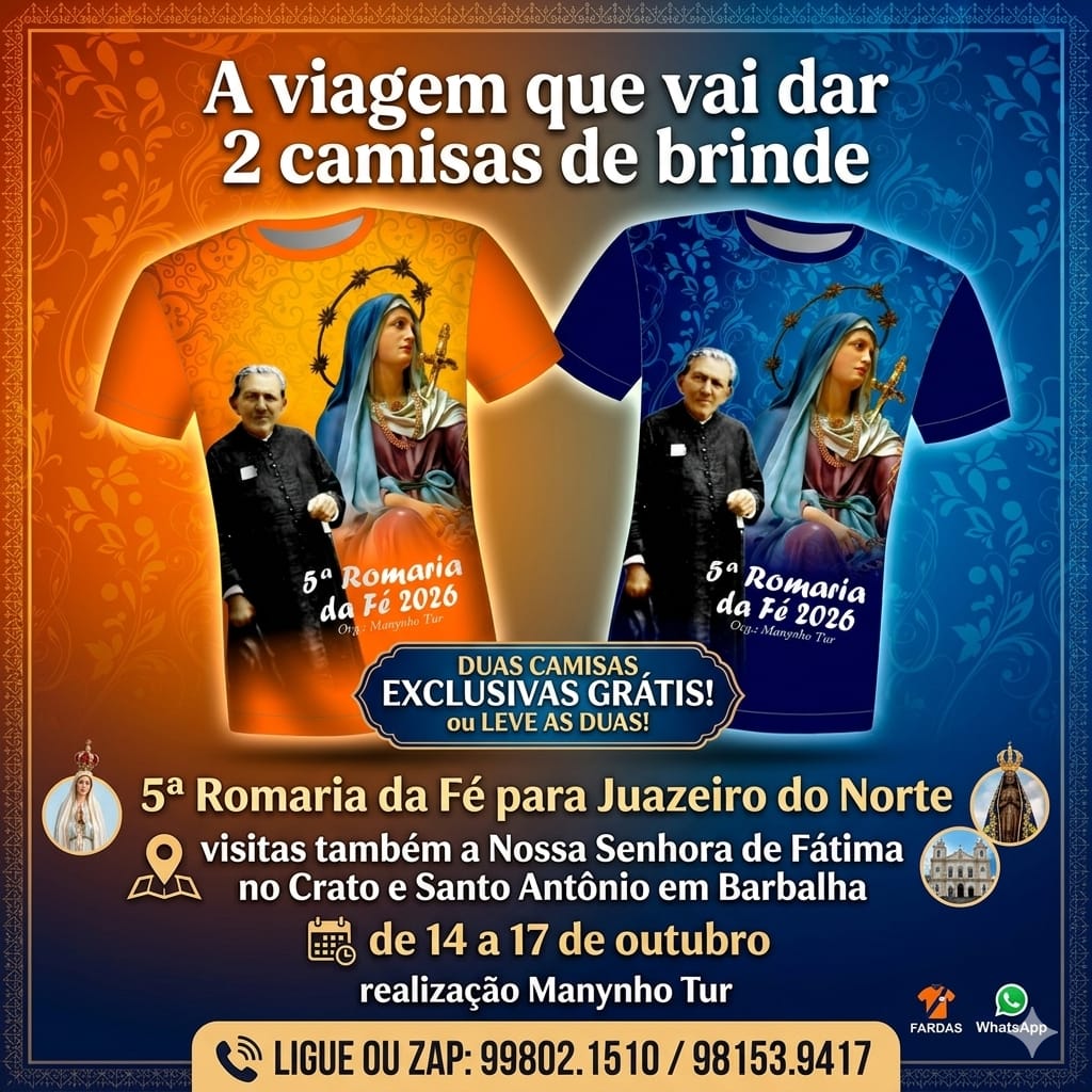 Você sente o chamado para renovar sua espiritualidade e viver momentos de profunda devoção? Entre os dias 14 e 17 de outubro, convidamos você para uma jornada inesquecível pelo coração religioso do Ceará: a 5ª Romaria da Fé.