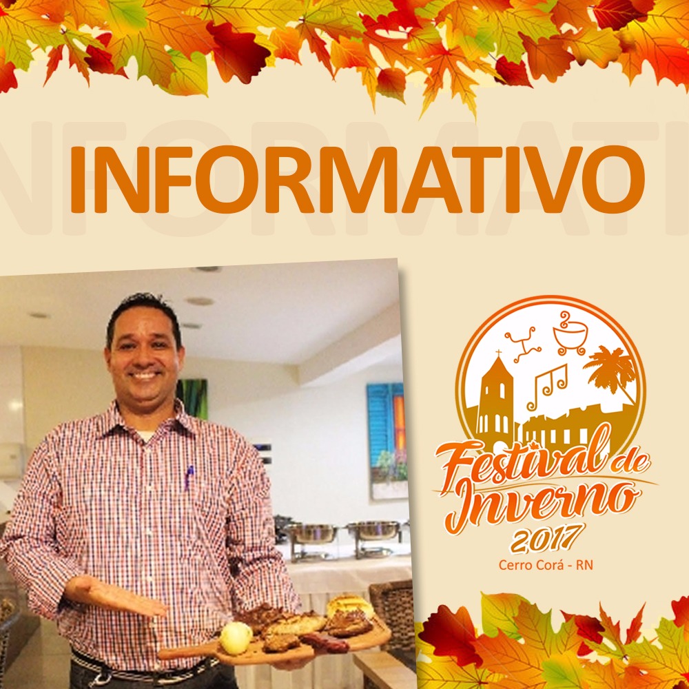A Coordenadoria Municipal de Turismo informa a todos aqueles que desejem comercializar alimentos e bebidas durante o Festival de Inverno 2017, que haverá reunião com o consultor Marcio Basso (SEBRAE – RN) para juntos definirmos uma melhor logística para o evento.