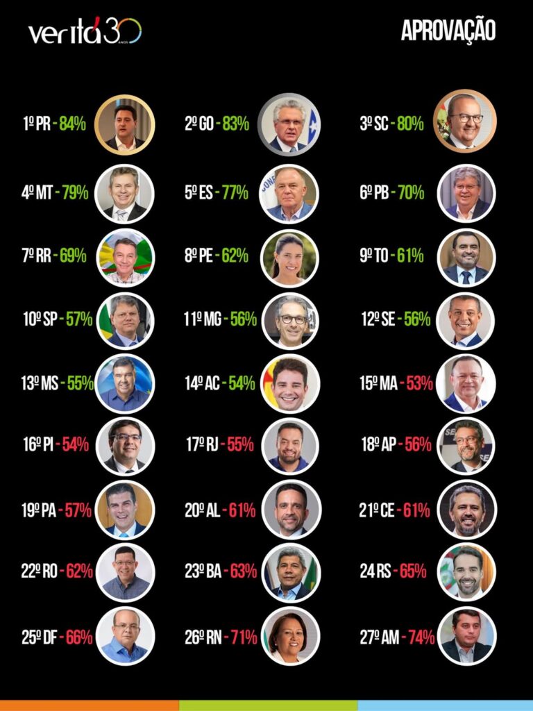 Instituto Veritá Aponta índice de reprovação entre governadores do Brasil