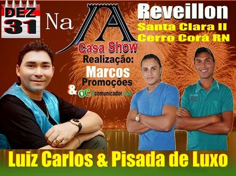O cantor Cerrocoraense Luiz Carlos volta ao fazer show no Assentamento Santa Clara ll, Serra de Santana, Cerro Corá, na noite dessa quarta na J.A Casa Show fazendo a festa “Réveillon do povão” e terá participação do grupo de forró Pisada de Luxo.