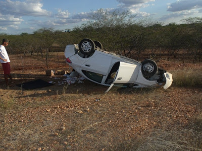 O condutor de outro carro que vinha logo atrás contou que o carro bateu no barranco perdeu o controle e capotou em seguida.