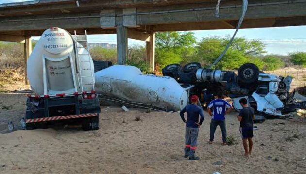 Motorista morre após caminhão bitrem cair de ponte próxima a Lajes-RN