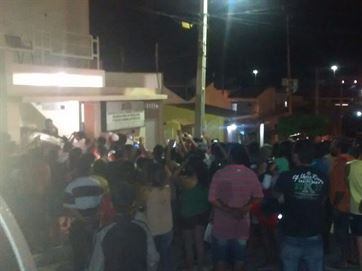 Enquanto a Polícia Civil colhia o depoimento dos suspeitos, uma grande concentração de pessoas se formou em frente da delegacia da cidade.