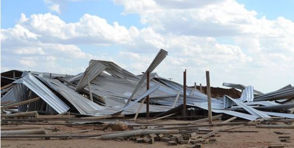 O portal Inforside destacou que, no início da tarde deste domingo (20), foi registrada uma ação do vento na cerâmica São Vicente, onde foi destruído um galpão com telhado metálico e pilares de concreto.