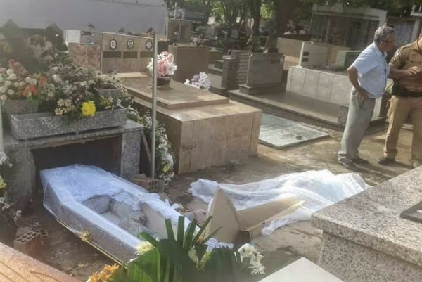 Funcionários do cemitério tinham acabado de chegar ao local para trabalhar quando viram o caixão da professora, que morreu de câncer, aperto e fora da lápide. O corpo estava ao lado, nú e com sinais aparentes de violência sexual. Os trabalhadores chamaram a polícia na hora.