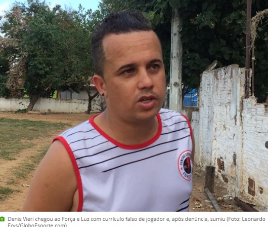 Polícia Civil do Rio Grande do Norte vai investigar o caso “Denis Vieri”. Denis Vieira da Silva, 34 anos, inicialmente se apresentou ao Força e Luz com um currículo falso de jogador – afirmava que tinha vestido a camisa de Santos, Vasco, PSV Eindhoven (Holanda) e Shakhtar Donetsk (Ucrânia), mas não havia registro em nenhuma dessas equipes, conforme apuração do GloboEsporte.com. Após a publicação da reportagem na quarta-feira, Denis desapareceu e deixou para trás quatro atletas que chegaram com ele ao clube – ele seria o empresário destes jogadores. Melquisedeque Carlos, Hélio Ciro, Wesley Henrique e Jefferson Lima foram vítimas de um golpe e registraram boletim de ocorrência em uma delegacia na zona Norte de Natal.