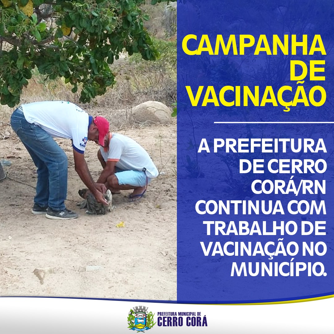 A campanha de vacinação no município de Cerro Corá/RN continua. A Prefeitura Municipal, através da Secretaria de saúde, esteve vacinando cães e gatos nas comunidades de Mangericão e Barra Azul.