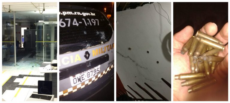 Os criminosos cercaram a base da Polícia Militar e atiraram contra o prédio e o carro da corporação. Ninguém ficou ferido. Em seguida, arrombaram a agência bancária e explodiram caixas eletrônicos.