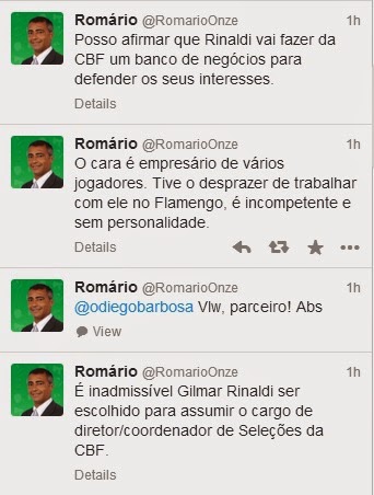 Romário detona novo coordenador da seleção “é incompetente e sem personalidade” Postado em 17 de julho de 2014