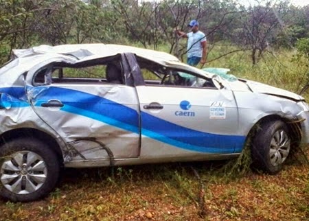 O veículo é lotado no escritório da CAERN de Caicó e estava sendo conduzido por um funcionário do órgão que perdeu o controle do carro e veio a capotar. Apesar da gravidade do acidente o motorista não sofreu ferimentos graves.